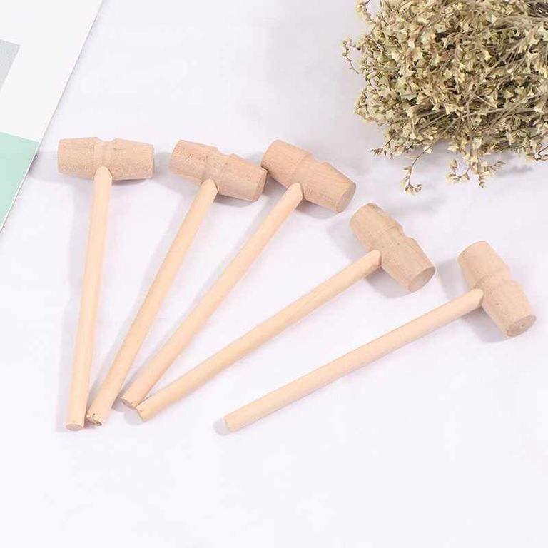 Молоточек - небольшой по размеру и весу, что позволяет легко удержать, даже маленьким деткам. Изготовлен из натуральной древесины, безопасен для детей.